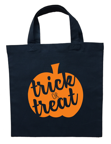 These trick or treat bags are double sided. The front side will provide your child's name above a cute baby elephant. The back side has trick or treat text in a pumpkin. These bags come in 2 sizes. The smaller size is 8" x 9" which is a good size for toddlers under 3 years old who will be trick or treating. The larger size, good for all ages, is 13" x 13". (These measurements do not include the straps. It's just the rectangular area that the art is placed on. The straps on the small bags are 12" long and 14" long on the larger bags). These bags are 100% cotton and will last through many years of wear and tear.